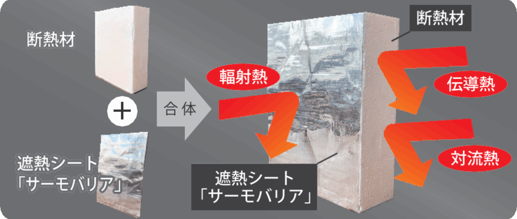 結論、理想の熱対策とは「伝導熱」「対流熱」に対し効果が高い断熱材と「輻射熱」の反射に優れたサーモバリアを合わせて使用することで3つの熱の移動の全てを効果的に止めることを実現します。
